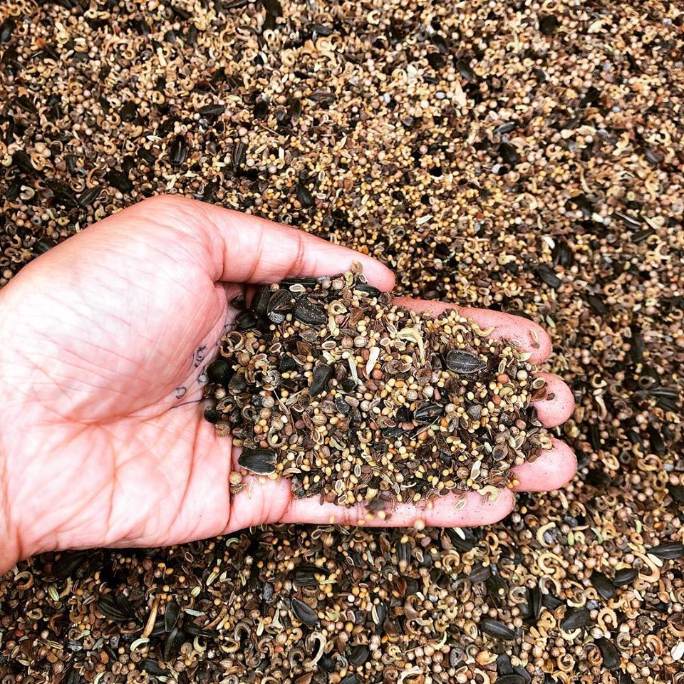 Wir pflanzen immer noch unsere Blumen- und Kräuterwiesen. Kornblume, Sonnenblume, Koriander, Dill und unser Lieblings- Klee unter vielen anderen ….